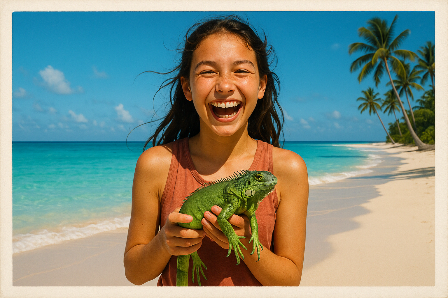 We will send you a standard postal with a picture of your selection and background of your choice. Just explain what you would see or where you want to see the person at and we will create one image with AI that reflects your demand